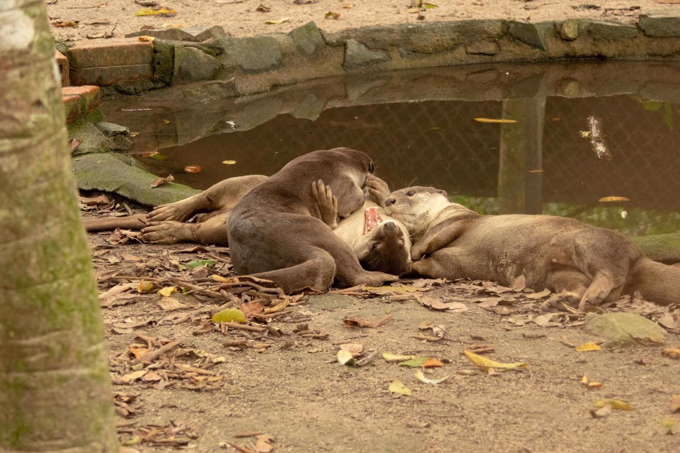 The Smooth coated Otters were hilarious. They acted like puppies. When they saw a group of people they all waddled over and made noises like crying dogs, climbing over each other and resting their head on the ledge like little puppies wanting some attention.
